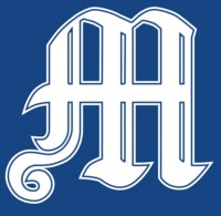 外円の「青」は海と空、内円の「朱」は力強く立ちのぼる日(太陽)、1925は創立の年を表し、「白梅」と「m」は本校の伝統を礎に誕生した新生明秀日立を表す。